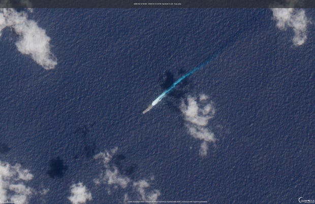 Footage shows the ship passing through the South China Sea.